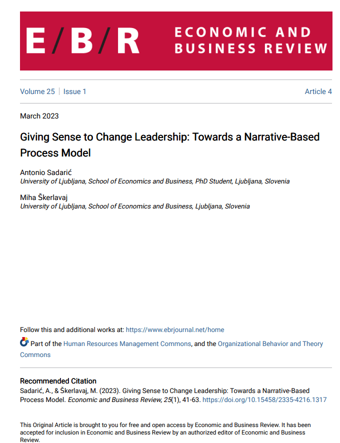 Welcome to read the paper dr. Antonio Sadarić and myself wrote about sensemaking and change leadership. Recent studies on change agency and organizational change failure have signicantly broadened the organizational behavior perspective on individual change experiences, however, the underlying mechanism for change leaders’ infuential behavior remains a relatively underspecied area. Our central theoretical contribution focuses on the ways in which linking the finndings from different research areas that deal with storytelling and persuasive communication can contribute to understanding the underlying mechanism of change leaders’ influential behavior. We examine the various strands of research in management concerned with change leadership and persuasive communication, and propose a multidisciplinary perspective from a variety of perspectives. Our approach draws on the key theoretical perspectives from the social cognitive theory and commensurable interdisciplinary findings as the basis for a narrative-based process model of change leaders’ in uential behavior. Our model includes propositions about the change leader’s interpretation of ideological change as well as the change leader’s process of sensemaking and sensegiving. We argue that the change leader’s persuasive communication efforts are based on the leader’s narrative intelligence and in uence, which promote the change recipient’s attachment formation.